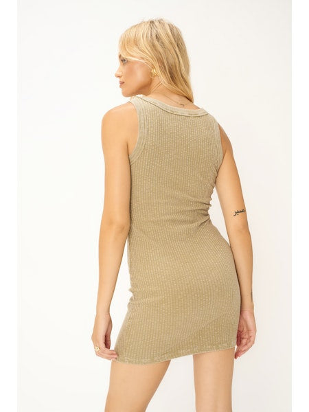 Tropicana Notch Neck Rib Dress In Tumbleweed