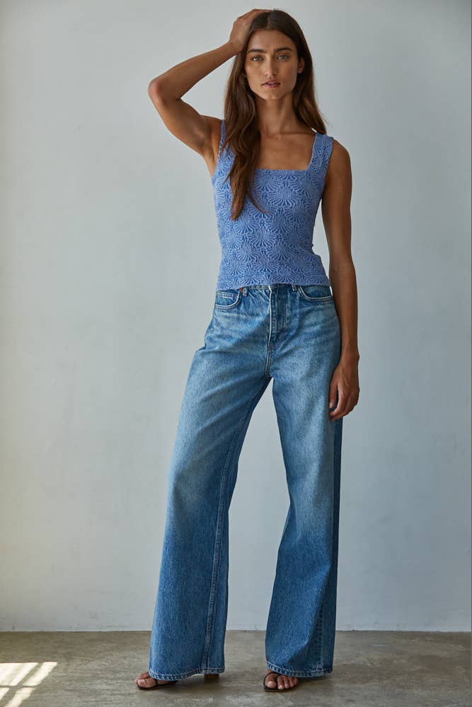 This unique, seamless jacquard tank top is crafted from a blend of Modal, Nylon, and Spandex for a comfortable and stretchy fit. The square neckline, sleeveless design, and all-over floral print create a vintage-inspired look. The ribbed knit construction and cropped length offer a modern and flattering silhouette. Pair it with high-waisted jeans or a skirt for a stylish and feminine outfit. (One Size)
