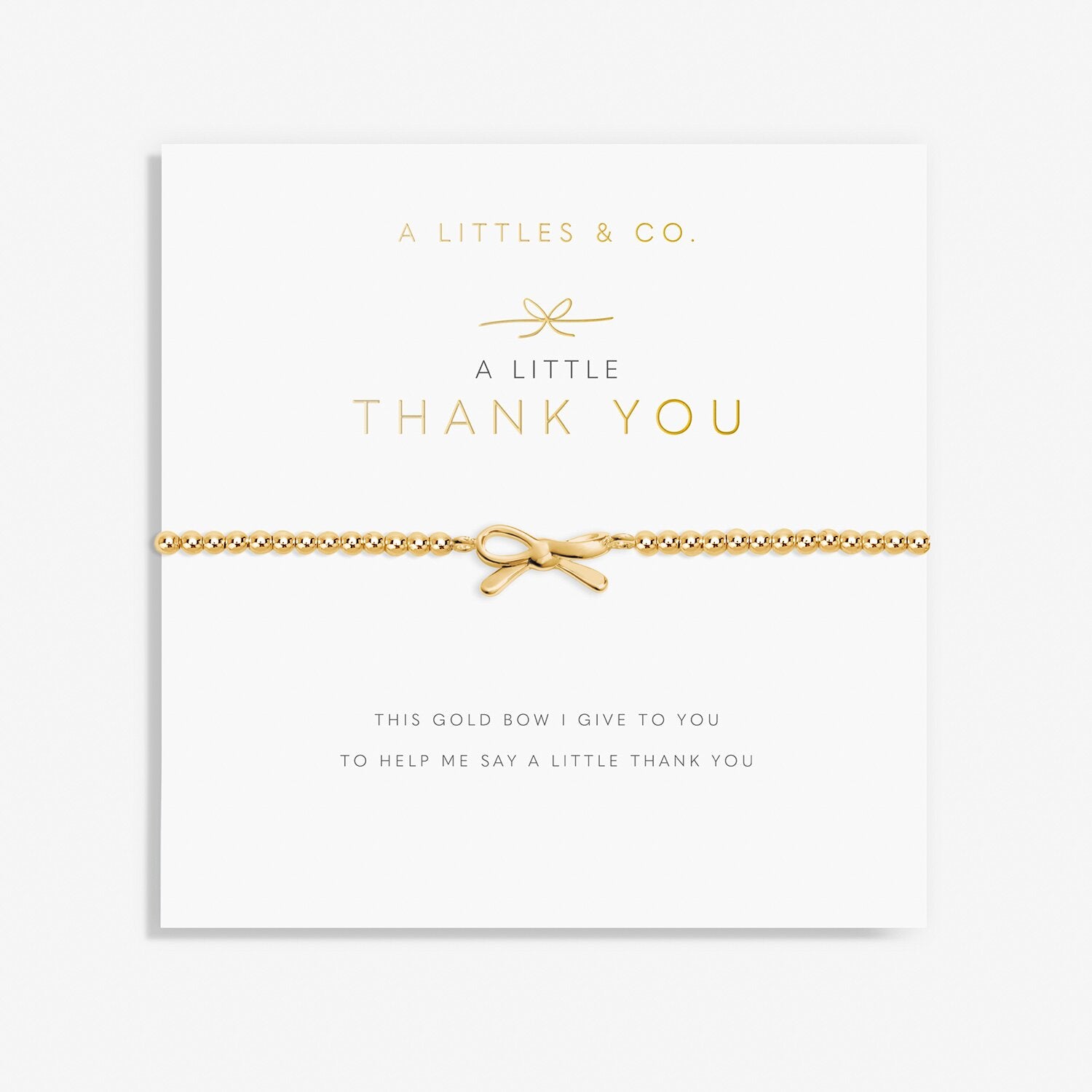 Gift pretty every time with our A Little Thank You Bracelet. Created in gorgeous gold-tone plating, this style features a stretch bead design to fit every wrist, and is laced with an adorable bow-shaped charm. Presented on a card thats stamped with the sentiment and sweet poem, this bracelet makes for the perfect gift.