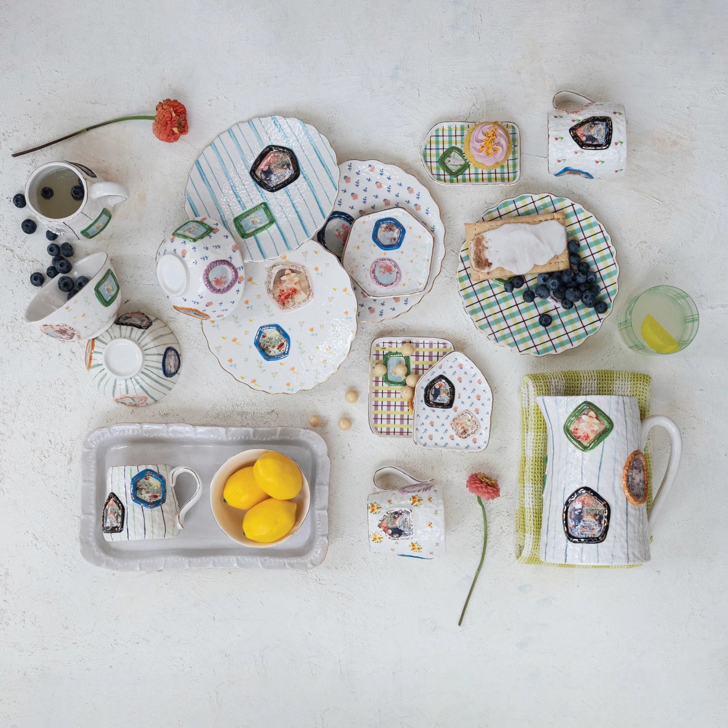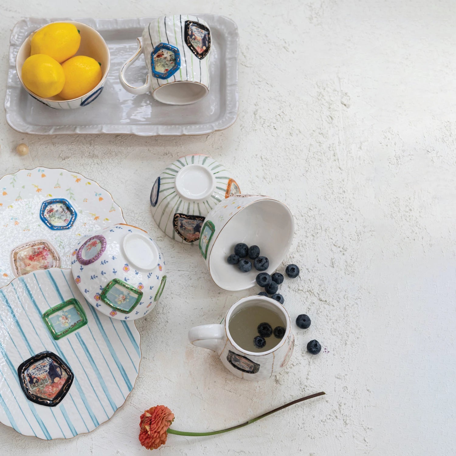 Elevate your everyday table with these beautifully crafted hand-painted bowls. Each piece features a unique embossed design with delicate patterns and framed motifs, accented by a touch of gold electroplating for a refined, vintage-inspired look. Perfect for serving small bites, desserts, or simply displaying as artful décor.